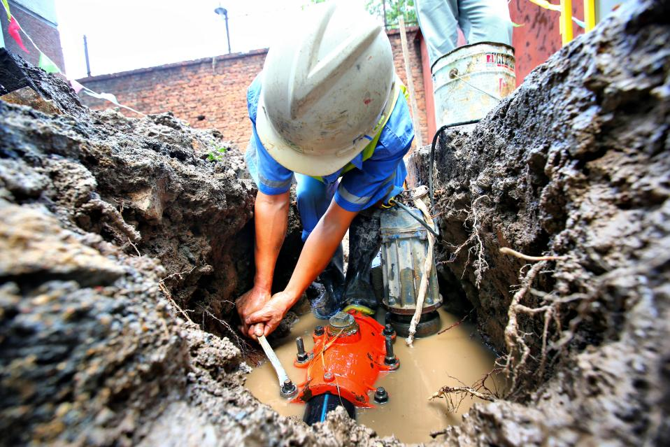 為確保高峰供水期間市民的正常用水,濟(jì)南水務(wù)集團(tuán)采用不停水搶修技術(shù)維修供水管線,保障市民不間斷供水。