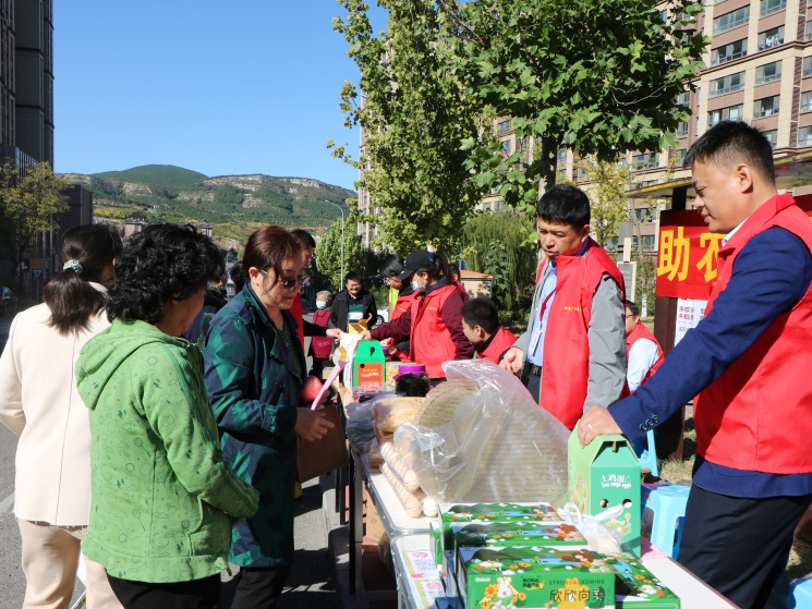 10月20日一早,由“第一書記”帶隊,大家為社區(qū)居民帶來了優(yōu)質(zhì)農(nóng)產(chǎn)品。活動現(xiàn)場擺滿了青石山小米、農(nóng)家泉水小花椒、手工地瓜粉皮、農(nóng)家散養(yǎng)山雞蛋、手工煎餅、無添加玫瑰花茶等農(nóng)產(chǎn)品,受到了居民的歡迎。