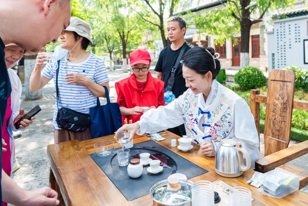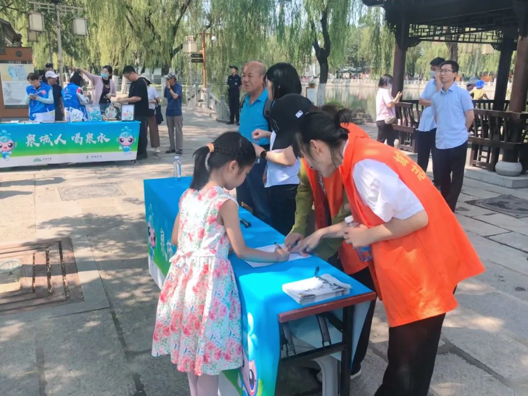 活動現場,有專家學者為大家講解泉水的形成、特點和文化內涵,讓人們更加深入地了解泉水的價值和意義。有文化傳承非遺制藥、茶藝展示者,讓參加活動的學生和教師在參觀走訪百花洲周邊知名泉水景點的同時親身感受泉水帶給城市的美好和靈氣,還有面帶微笑的文明創(chuàng)建志愿者們在現場開展引導咨詢、應急服務、愛心幫扶等文明實踐和志愿服務,為弘揚志愿精神凝聚文明力量,為文明城市建設添磚加瓦。