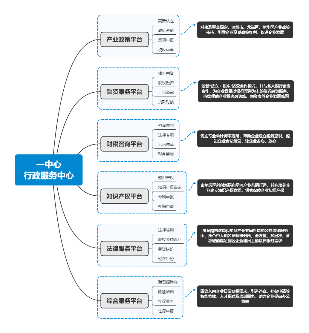 高質(zhì)量發(fā)展需要精細(xì)化運(yùn)營(yíng) 2022年以來(lái),政策不斷加持下,建設(shè)認(rèn)定一批“專(zhuān)精特新”產(chǎn)業(yè)園,加快“專(zhuān)精特新”企業(yè)集聚發(fā)展;支持“專(zhuān)精特新”產(chǎn)業(yè)園提升服務(wù)功能,鼓勵(lì)產(chǎn)業(yè)園區(qū)引進(jìn)重點(diǎn)項(xiàng)目和企業(yè),培育和壯大重點(diǎn)產(chǎn)業(yè)集群已經(jīng)成為國(guó)內(nèi)部分城市推動(dòng)“專(zhuān)精特新”企業(yè)集群集聚的一種選擇。如重慶兩江新區(qū)認(rèn)定金泰產(chǎn)業(yè)園、大地企業(yè)公園等四個(gè)園區(qū)為為“專(zhuān)精特新”產(chǎn)業(yè)園等。 在此基礎(chǔ)上,一方面,產(chǎn)城運(yùn)營(yíng)商聚焦專(zhuān)精特新發(fā)展的關(guān)鍵領(lǐng)域和環(huán)節(jié),在園區(qū)運(yùn)營(yíng)服務(wù)層面構(gòu)建專(zhuān)門(mén)面向?qū)>匦缕髽I(yè)的服務(wù)框架。如星河產(chǎn)業(yè)集團(tuán)提出了“1+2+3”專(zhuān)精特新的服務(wù)模式?!?”是區(qū)域政府,包括國(guó)家的有關(guān)部門(mén),在政策方向上進(jìn)行方向指導(dǎo);“2”是培育單位,星河產(chǎn)業(yè)集團(tuán)聯(lián)合領(lǐng)軍企業(yè)研究院共同成立了專(zhuān)精特新的服務(wù)中心,通過(guò)研究院和星河產(chǎn)業(yè)集團(tuán)做培育單位進(jìn)行企業(yè)培育和招商運(yùn)營(yíng)?!?”是小巨人企業(yè),通過(guò)龍頭企業(yè)、小巨人企業(yè)的參與,構(gòu)建產(chǎn)業(yè)協(xié)同、創(chuàng)新帶動(dòng)的共建模式。與此同時(shí),星河還搭建了“1+6”重點(diǎn)工程,加速專(zhuān)精特新企業(yè)集聚、成長(zhǎng)、創(chuàng)新轉(zhuǎn)型。 另一方面,在政策指引下,不僅是企業(yè)在走向?qū)>匦?,園區(qū)運(yùn)營(yíng)商也在打造“專(zhuān)精特新”運(yùn)營(yíng)模式。其一,賽道專(zhuān)業(yè)化,園區(qū)運(yùn)營(yíng)商通過(guò)打造主題園區(qū),推動(dòng)產(chǎn)業(yè)鏈上下游的中小企業(yè)規(guī)?;郏屍髽I(yè)在產(chǎn)業(yè)生態(tài)中持續(xù)發(fā)展,建立穩(wěn)定可觀(guān)的供應(yīng)鏈需求運(yùn)營(yíng)商配合集中投放資源,協(xié)同政府制定政策,讓企業(yè)獲得成本可控的長(zhǎng)期供應(yīng)鏈保障。其二,運(yùn)營(yíng)精細(xì)化,不斷加強(qiáng)園區(qū)服務(wù)的數(shù)字化、智能化管理,完善園區(qū)配套建設(shè)和服務(wù)體系,在延伸產(chǎn)業(yè)鏈條、形成產(chǎn)業(yè)集群、構(gòu)建產(chǎn)業(yè)生態(tài)的同時(shí)提升運(yùn)營(yíng)商資產(chǎn)效率。其三,資源特色化,園區(qū)運(yùn)營(yíng)商基于園區(qū)產(chǎn)業(yè)基礎(chǔ)、自身資源稟賦、區(qū)域市場(chǎng)擴(kuò)張能力聚焦細(xì)分領(lǐng)域打造自身核心業(yè)務(wù)優(yōu)勢(shì)。如微醫(yī)集團(tuán)結(jié)合“互聯(lián)網(wǎng)+醫(yī)療健康”業(yè)態(tài),打造互聯(lián)網(wǎng)健康醫(yī)療小鎮(zhèn),覆蓋“全科+專(zhuān)科、線(xiàn)上+線(xiàn)下”的醫(yī)療健康服務(wù)體系。其四,服務(wù)創(chuàng)新化,運(yùn)營(yíng)商搭載數(shù)字化等新興技術(shù)賦能園區(qū)運(yùn)營(yíng)管理,通過(guò)打造智慧園區(qū)平臺(tái)帶動(dòng)管理模式創(chuàng)新、通過(guò)REITs等投融管退模式打通輕重資產(chǎn)循環(huán),創(chuàng)新商業(yè)模式等。深圳·星河雙子塔:依托深圳·星河WORLD產(chǎn)融大城,搭載全方位服務(wù)及配套 3月底,“融合共生 向新而行”中國(guó)最高等高雙子塔全球發(fā)布會(huì)在深圳·星河WORLD舉行。深圳·星河雙子塔作為深圳·星河WORLD產(chǎn)融大城升級(jí)力作,于深圳中軸之上,乘160萬(wàn)m2超級(jí)灣區(qū)都會(huì)之勢(shì),打造369米中國(guó)最高等高雙子塔。深圳·星河WORLD是集產(chǎn)業(yè)、商務(wù)、居住、教育、購(gòu)物、休閑等多種業(yè)態(tài)配套的產(chǎn)融新城,園區(qū)占據(jù)福田CBD、深圳北站商務(wù)區(qū)和坂雪崗科技城三角鼎立優(yōu)勢(shì)區(qū)位,定位“園區(qū)+金融”雙閉環(huán)總部基地。目前已聚集超1200家企業(yè),其中世界500強(qiáng)26家、上市企業(yè)46家,134家國(guó)高企業(yè),形成新一代信息技術(shù)、高端裝備制造、文化創(chuàng)意、生命健康、科技金融五大產(chǎn)業(yè)集群,預(yù)計(jì)雙子塔建成后整個(gè)園區(qū)將提供超7.5萬(wàn)就業(yè)崗位。 產(chǎn)業(yè)、企業(yè)、人才的發(fā)展離不開(kāi)良好的營(yíng)商環(huán)境,為提升產(chǎn)業(yè)競(jìng)爭(zhēng)力,助推企業(yè)全生命周期成長(zhǎng),星河產(chǎn)業(yè)以聯(lián)盟共享理念為核心,以資源運(yùn)作為抓手,以平臺(tái)生態(tài)圈建設(shè)為宗旨,與入駐企業(yè)、合作伙伴、地方政府等共建全方位產(chǎn)業(yè)運(yùn)營(yíng)服務(wù)體系,實(shí)現(xiàn)多方共生、共贏(yíng)。依托星河強(qiáng)大的綜合業(yè)務(wù)板塊協(xié)同,星河超級(jí)企業(yè)服務(wù)中心通過(guò)打造“一中心六平臺(tái)”的服務(wù)體系,以產(chǎn)業(yè)服務(wù)為核心、物業(yè)服務(wù)為基礎(chǔ)、商務(wù)及配套服務(wù)為支點(diǎn),致力于締造全方位多層次的高端智慧服務(wù)。該服務(wù)體系涵蓋了279項(xiàng)服務(wù)、逾300人服務(wù)團(tuán)隊(duì)、“1234”響應(yīng)機(jī)制、24小時(shí)服務(w