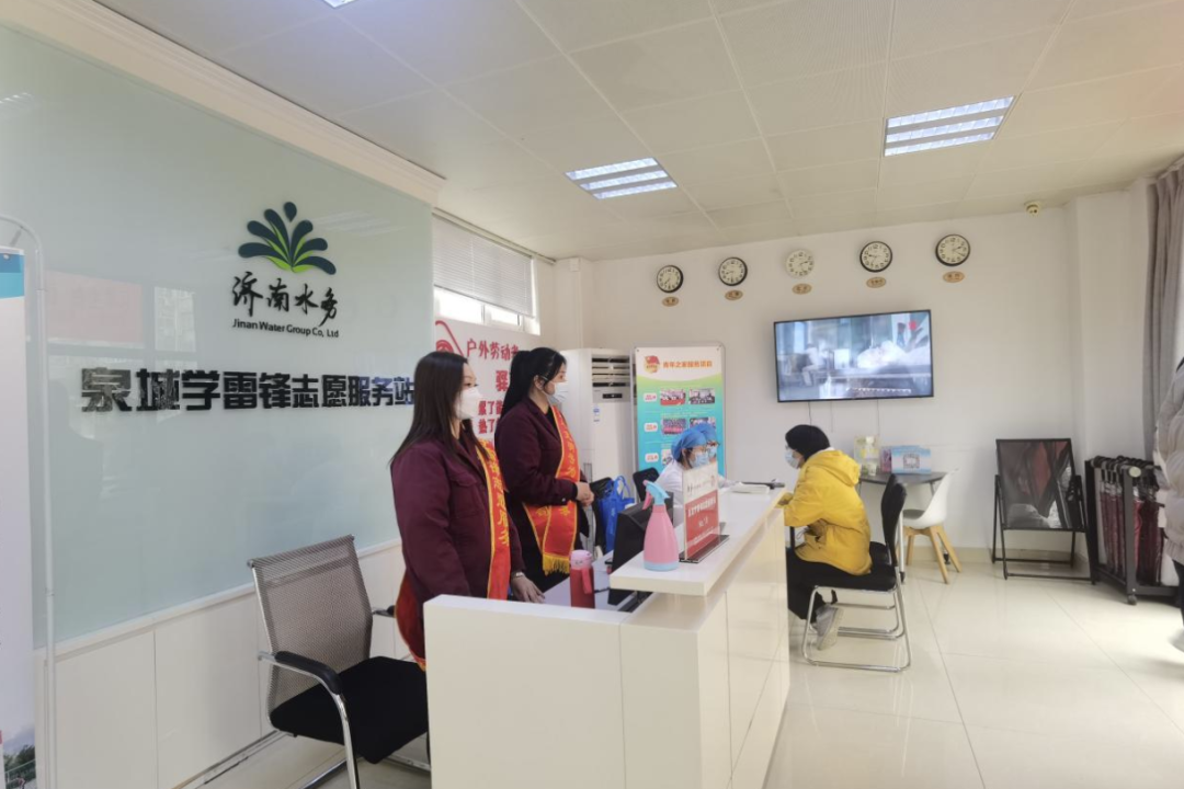 濟(jì)南水務(wù)集團(tuán)“學(xué)雷鋒志愿服務(wù)站”于2016年6月30日在歷下區(qū)燕子山路35號(濟(jì)南水務(wù)集團(tuán)客服中心)建成,每天由濟(jì)南水務(wù)集團(tuán)兩名青年志愿者向市民免費(fèi)提供交通、旅游等信息咨詢,充電充氣、醫(yī)藥救護(hù)等應(yīng)急服務(wù),報紙閱覽、免費(fèi)WiFi等愛心服務(wù),文明禮儀、節(jié)水保泉等文明倡導(dǎo)服務(wù),供水歷史介紹、用水知識告知等特色服務(wù),年均服務(wù)時數(shù)達(dá)3043小時,平均每年提供志愿服務(wù)1100余人次。