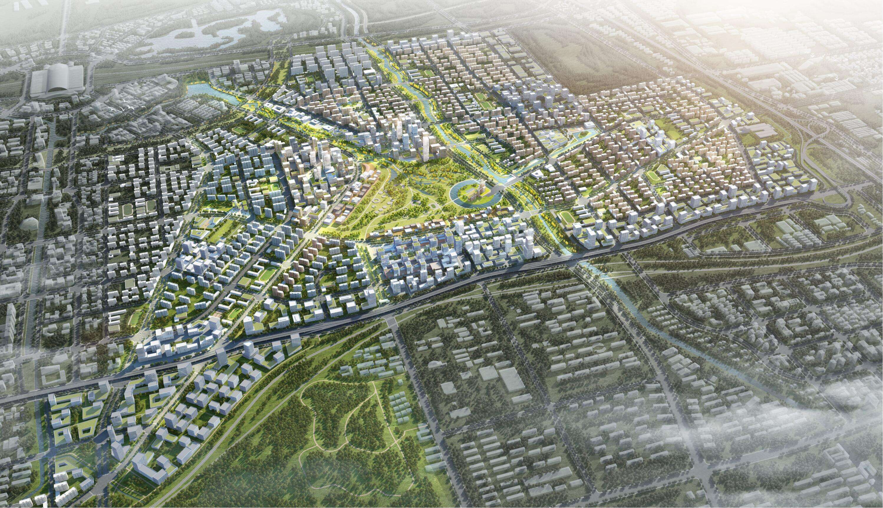 片區(qū)堅(jiān)持生態(tài)優(yōu)先、綠色發(fā)展的理念,先行啟動(dòng)中央森林公園、森林公園地下商業(yè)、韓倉(cāng)河生態(tài)景觀帶綜合整治等項(xiàng)目的建設(shè)。其中森林公園占地面積約 680 畝,綠地率高達(dá) 86%,為濟(jì)南“東強(qiáng)”區(qū)域的綠肺;韓倉(cāng)河生態(tài)景觀綜合整治項(xiàng)目融合生態(tài)防護(hù)、休閑游賞功能于一體,形成東部新城獨(dú)特的生態(tài)景觀。片區(qū)還將對(duì)濟(jì)鋼大門、3200 高爐等進(jìn)行保留改造,形成新舊建筑形態(tài)的碰撞與融合,引領(lǐng)城市的更新和多元化發(fā)展。
